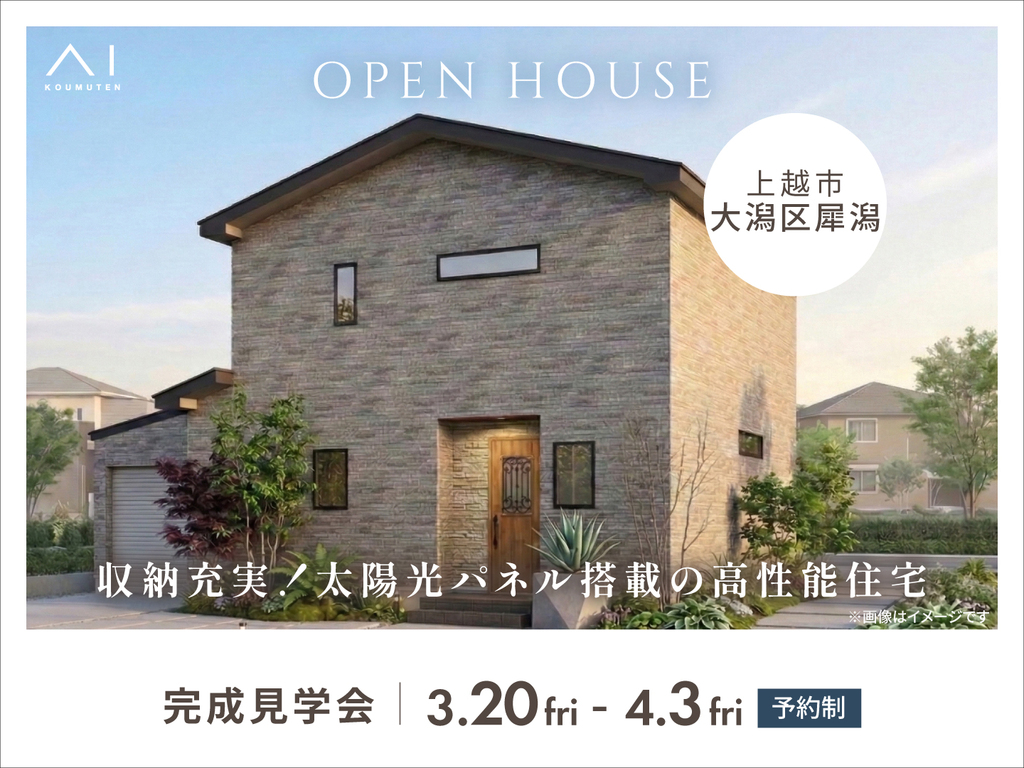 長岡展示場 《上越市大潟区犀潟》収納充実!太陽光パネル搭載の高性能住宅 完成見学会