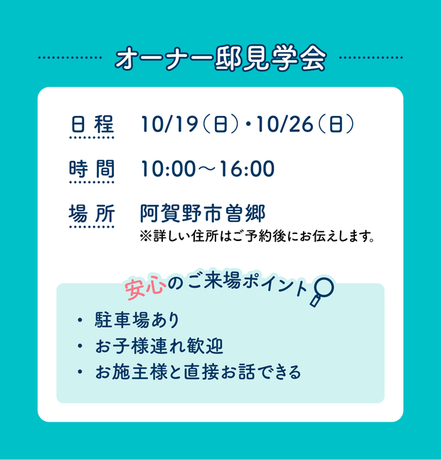 アイ工務店の『住まいの勉強会』は、オーナー邸・完成見学会・モデルハウスを見学できる年2回の期間限定特別イベントです!