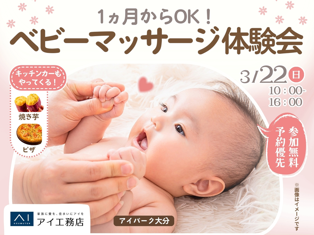 | タイトル | アイパーク大分(複合型住宅展示場) 1ヵ月からOK!ベビーマッサージ体験会 |