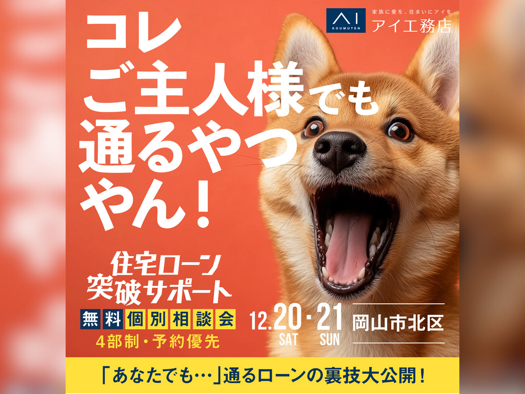 | タイトル | アイギャラリー岡山(ショールーム併設型住宅展示場) 住宅ローン突破サポート相談会 |