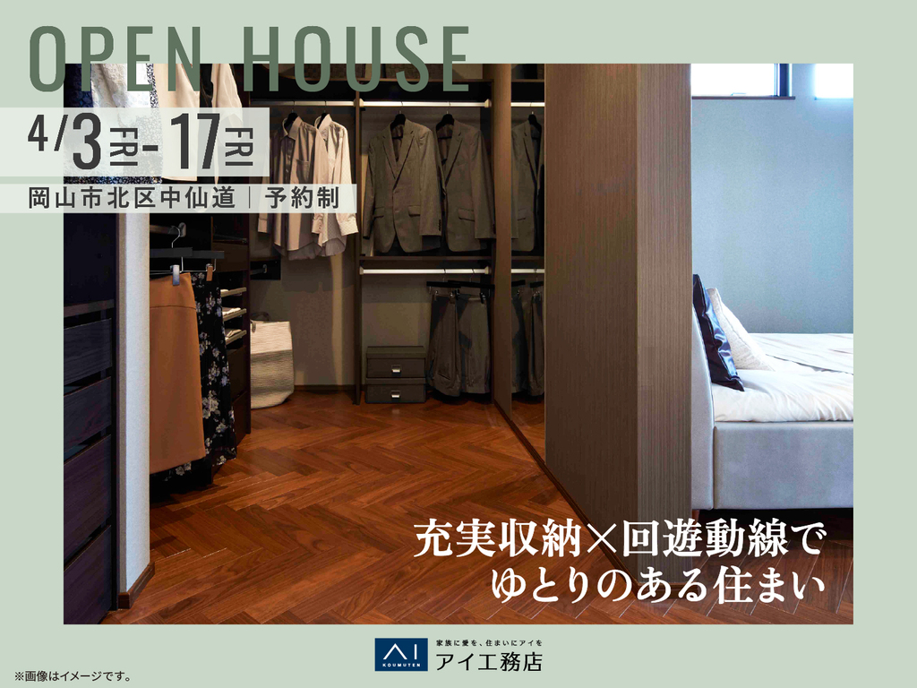 | タイトル | アイギャラリー岡山 《岡山市北区中仙道》充実収納×回遊動線でゆとりのある住まい 完成見学会 |