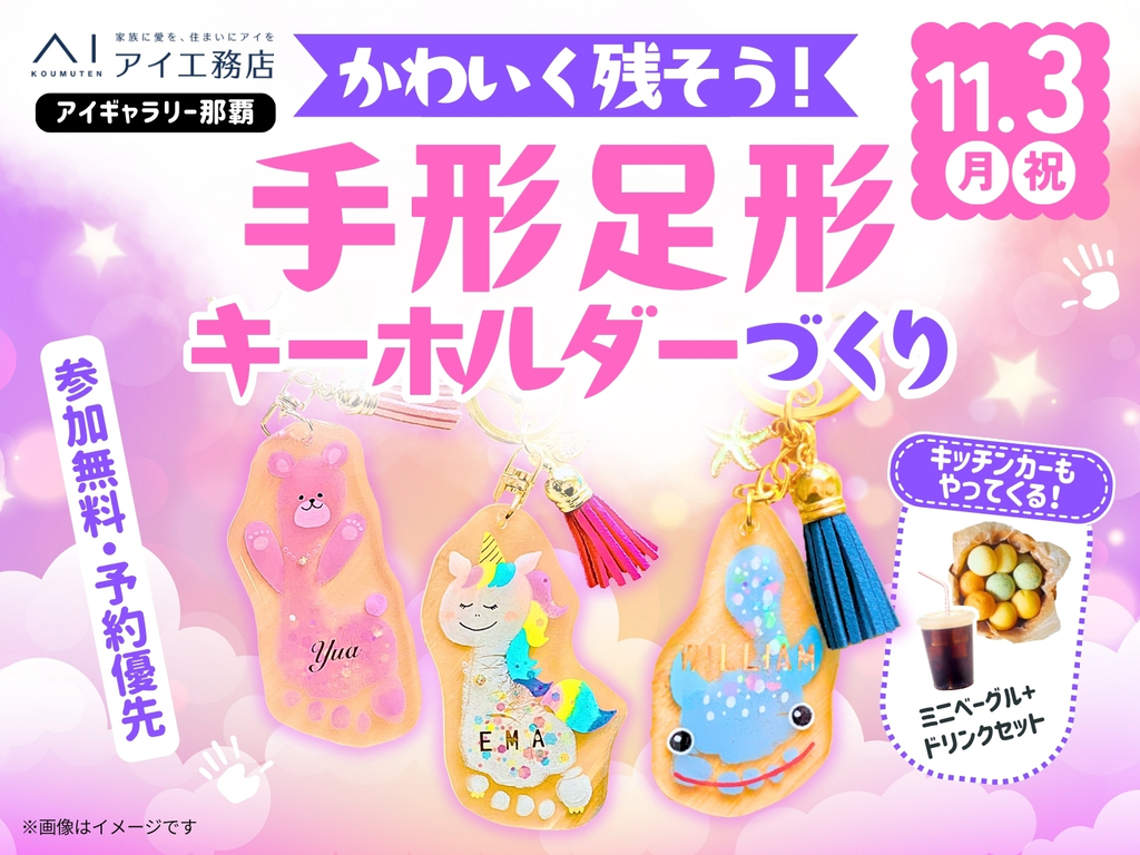 タイトル | アイギャラリー那覇(ショールーム併設型住宅展示場) かわいく残そう!手形足形キーホルダーづくり |