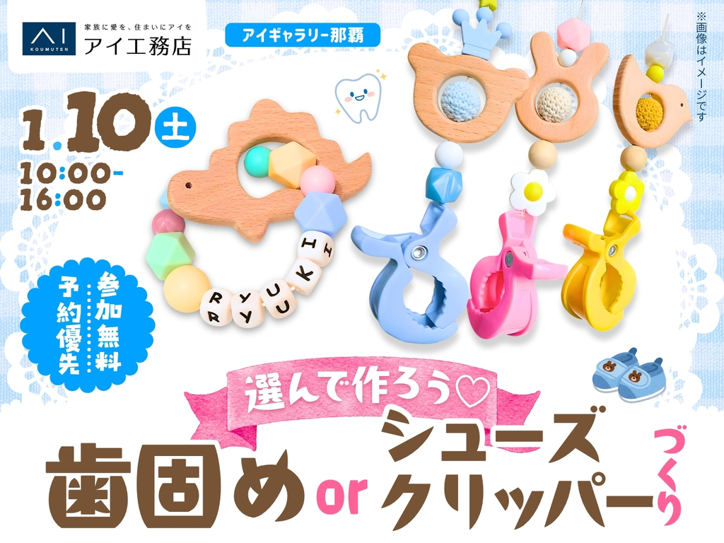 | タイトル | アイギャラリー那覇(ショールーム併設型住宅展示場) 選んで作ろう♡歯固めorシューズクリッパーづくり |