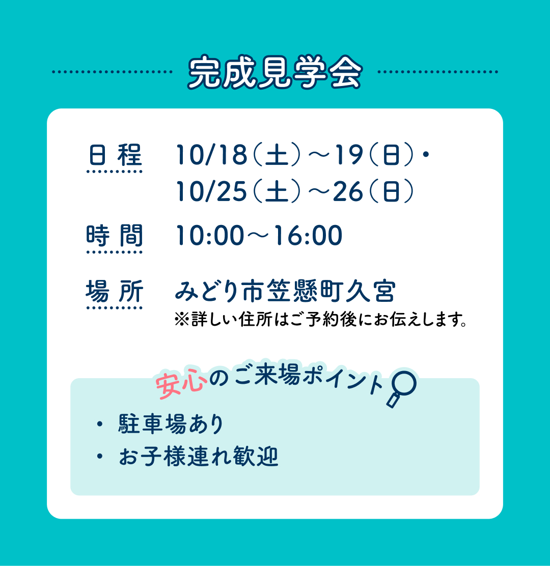 アイ工務店の『住まいの勉強会』は、オーナー邸・完成見学会・モデルハウスを見学できる年2回の期間限定特別イベントです!