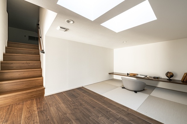 3帖のハーフ収納は収納スペースとしてだけでなく、くつろぎ空間に使えるタタミスペースでありながら、お子様の遊び場にもなる便利なスペース。
