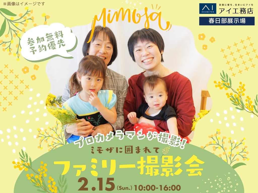 | タイトル | 春日部展示場 ミモザの花に囲まれて🌼ファミリー撮影会 |