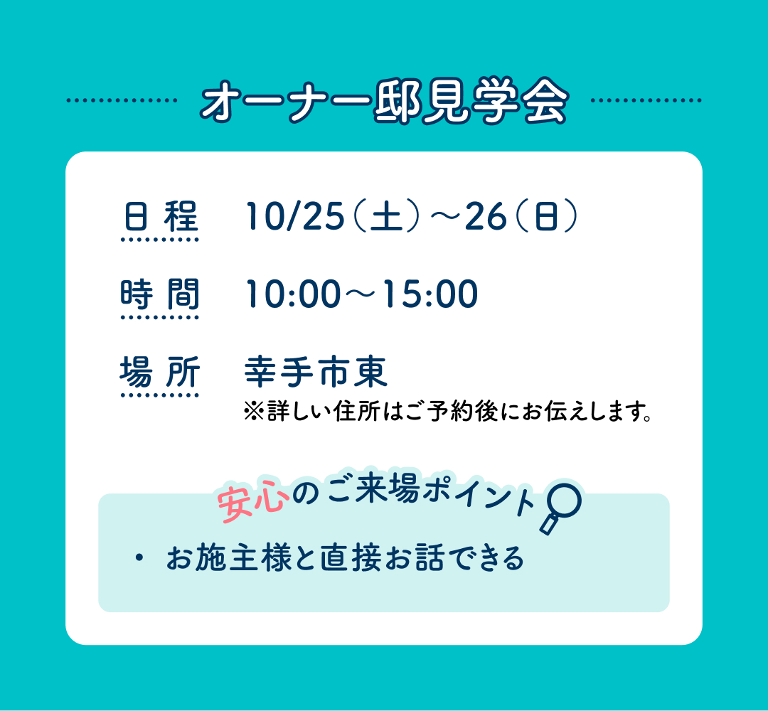 アイ工務店の『住まいの勉強会』は、オーナー邸・完成見学会・モデルハウスを見学できる年2回の期間限定特別イベントです!