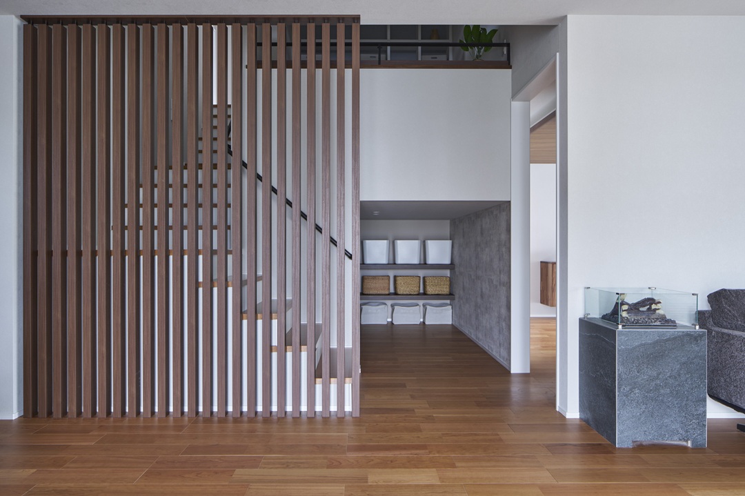 ハーフ吹抜の上に2.5階となるスキップフロアを作ることで、吹き抜けとゆとりある収納スペースを両立しています。