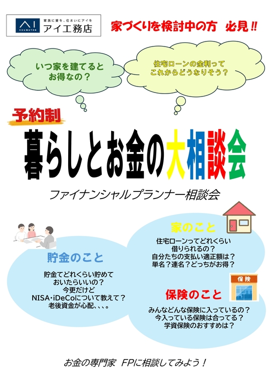 | タイトル | 東松山展示場 ファイナンシャルプランナー相談会 |