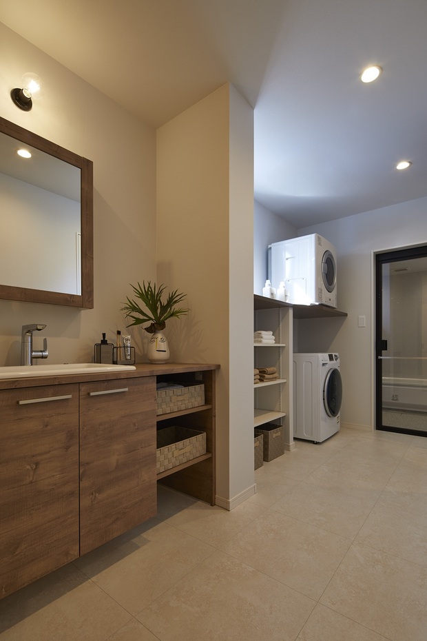 リビングを通らず洗面所に行くことができ、汚れ物もすぐに洗濯機へ入れお風呂に入る事ができます。リビングに入る前に手洗いができるので清潔に保つことができます。