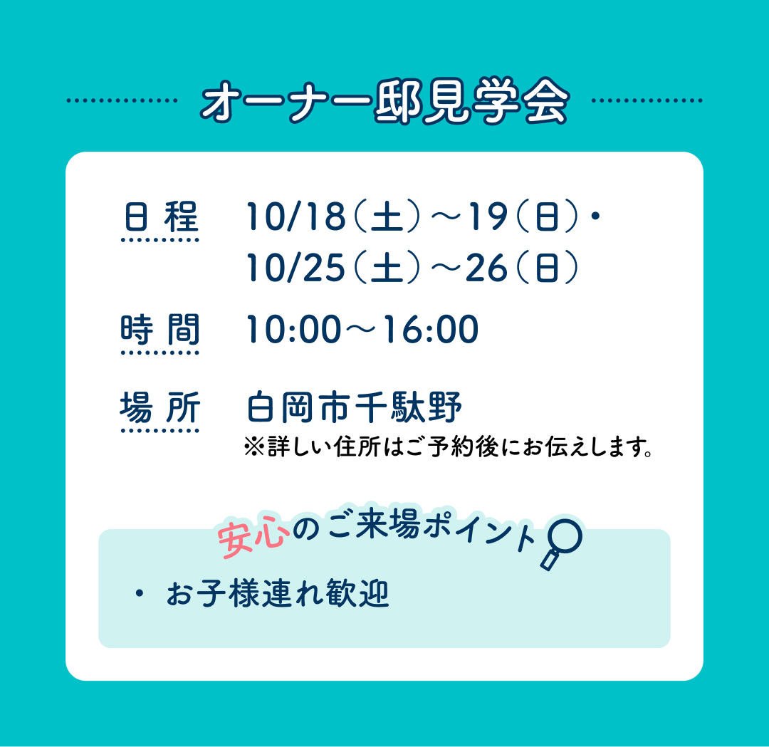アイ工務店の『住まいの勉強会』は、オーナー邸・完成見学会・モデルハウスを見学できる年2回の期間限定特別イベントです!