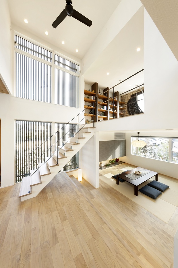 スキップフロアのタタミコーナーは、多目的に活用できるくつろぎ空間。アイ工務店ならではの縦空間を最大限活かした設計に注目です💡