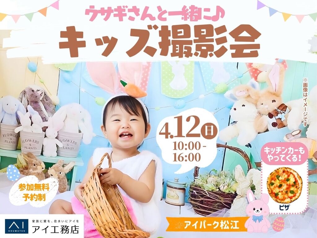 | タイトル | アイパーク松江(複合型住宅展示場) ウサギさんと一緒に📸キッズ撮影会 |