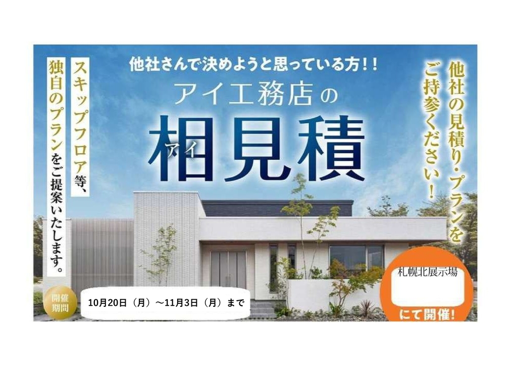 | タイトル | 札幌北展示場 アイ工務店の相見積もり |