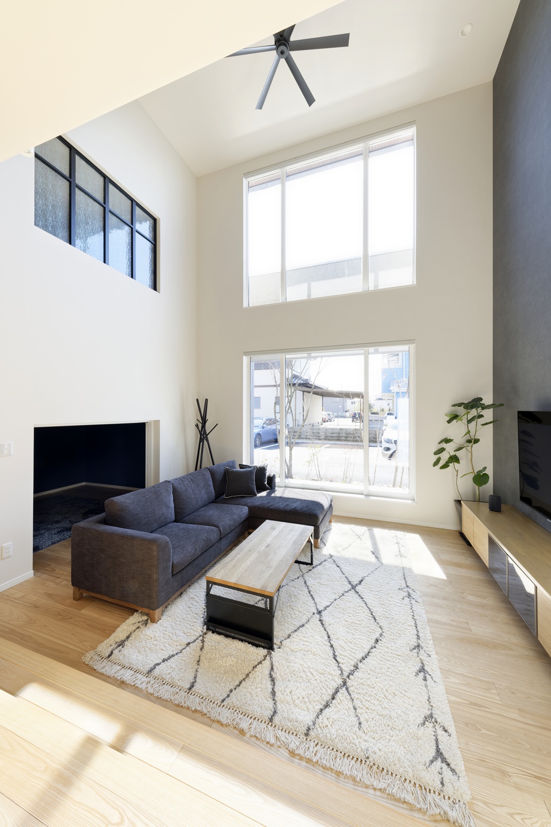 ハーフ吹抜けが生み出す縦の広がりで、リビングに開放感をプラス。ほどよい高さの抜け感が、心地よい暮らしを演出します。