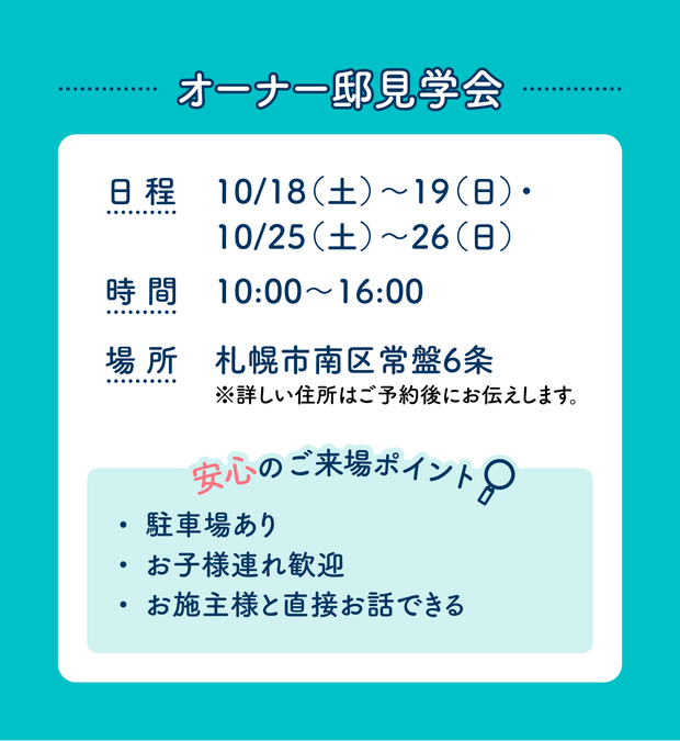 | タイトル | 札幌宮の沢展示場 猫と家族に心地よい住まい オーナー様邸見学会 |