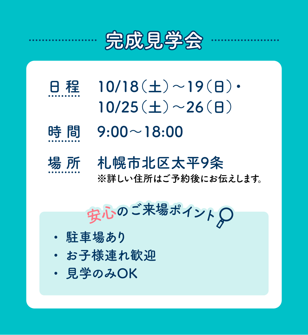 | タイトル | 札幌北円山展示場 効率動線で趣味時間が増える家 完成見学会 |