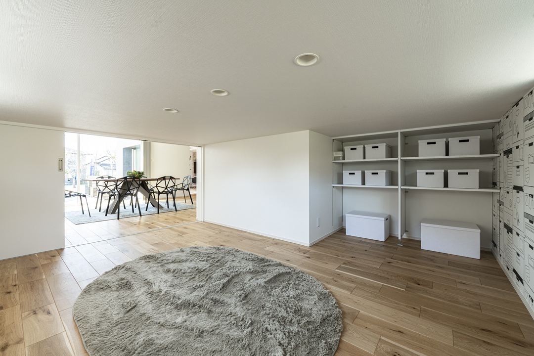 ハーフ収納は収納スペースとしてだけでなく、お子様の遊び場にもなる便利なスペース。ハーフ収納上部1.5階は洋室として利用。縦の空間を最大限に活かしたスペースです。