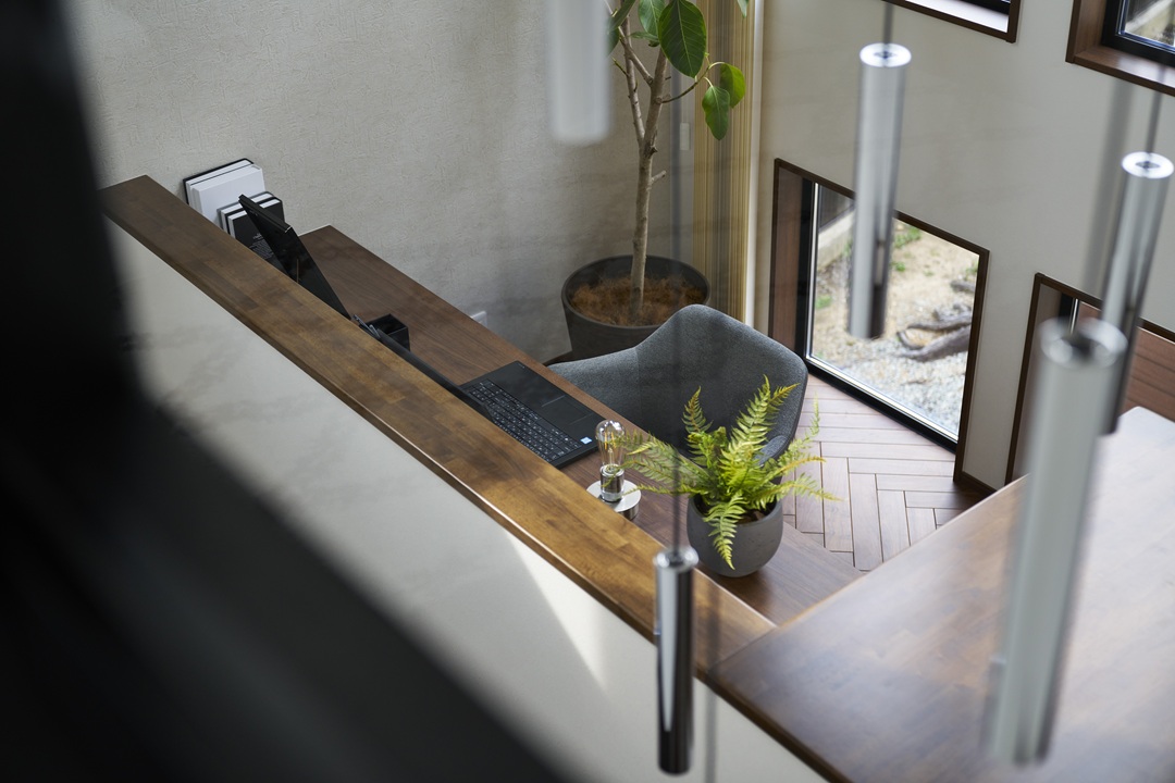 スキップフロアを活かした立体的な間取りには、奥様の作業スペースを採用。空間の高低差をうまく活かすことで、暮らしの幅を広げました。