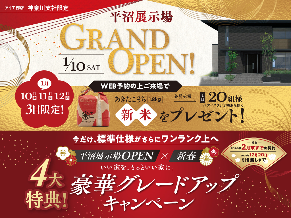 | タイトル | 秦野展示場 【平沼展示場オープン記念×新春】豪華グレードアップキャンペーン |