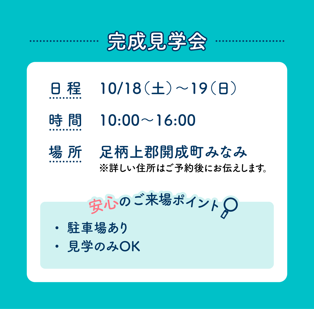 アイ工務店の『住まいの勉強会』は、オーナー邸・完成見学会・モデルハウスを見学できる年2回の期間限定特別イベントです!