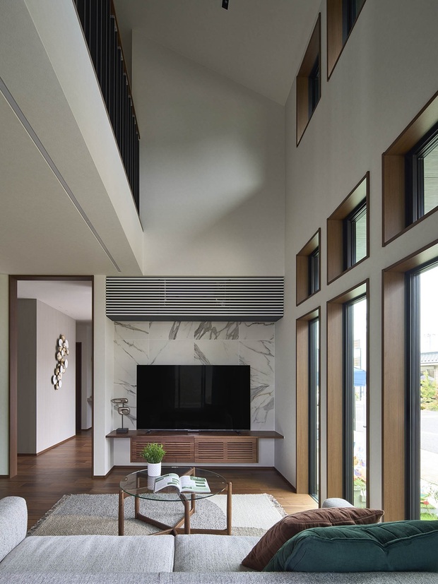 猫ちゃんも喜ぶ開放的な吹抜けリビング