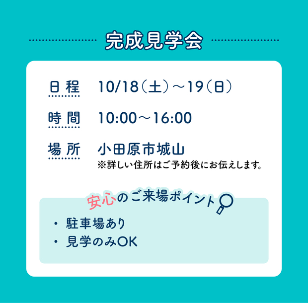 ※当日は小田原展示場へお越しいただき、現地にご案内させていただきます。