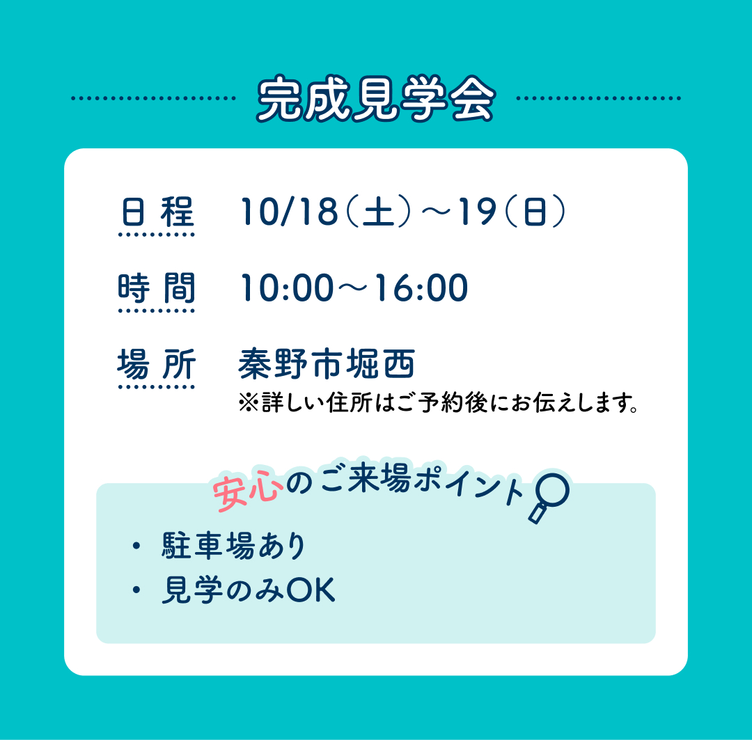 当日は秦野展示場へお越しいただき、現地にご案内させていただきます。
