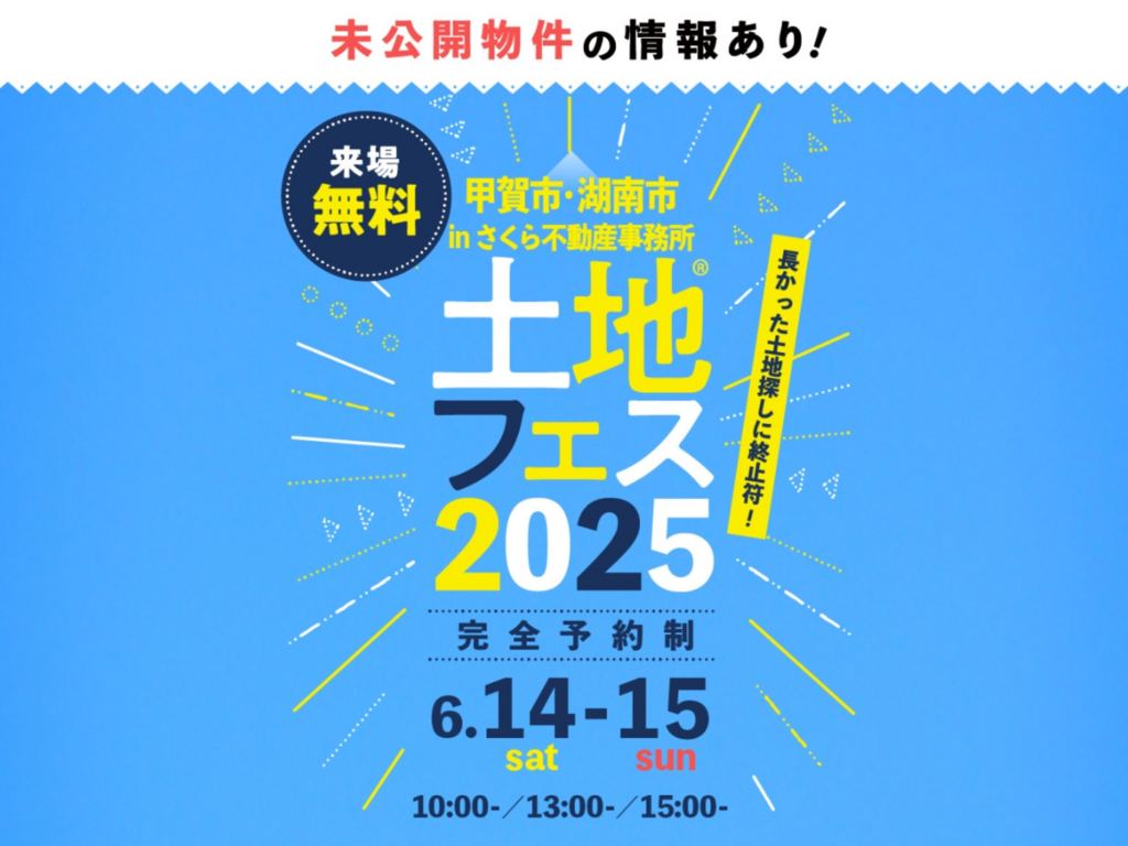 | タイトル | 草津展示場 土地フェス®2025 会場:さくら不動産事務所 |