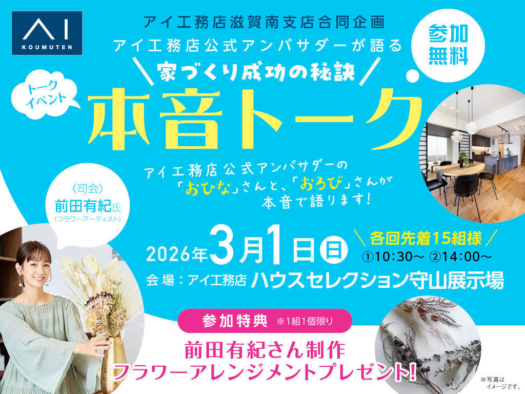 滋賀県守山市 公式アンバサダーが語る 家づくり成功の秘訣 本音トークイベント 来場予約ページ