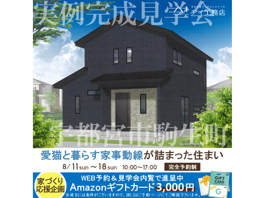 下都賀郡壬生町にアイ工務店の新築注文住宅【愛猫と暮らす家事動線が詰まった住まい】が完成しました。