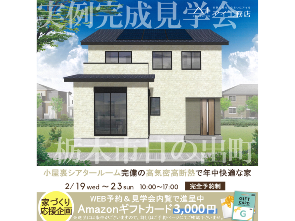 栃木県栃木市日の出町にアイ工務店の新築注文住宅【小屋裏シアタールーム完備の高気密高断熱で年中快適な家】が完成しました。