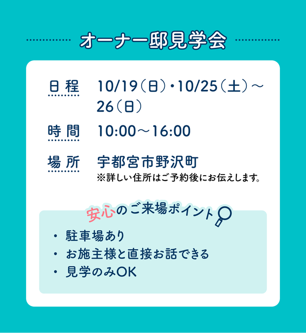| タイトル | 那須塩原展示場 広々空間でゆとりある暮らし オーナー様邸見学会 |