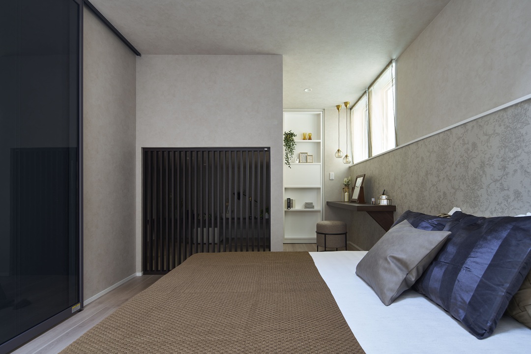 夫はゴルフの打ちっぱなしスペースをつくり、私はギターを自由に弾ける。寝室は防音性の高い隠し扉にしたので、夜勤の夫もぐっすり眠れます。友人が「寝室どこ!?」と驚くのも、ちょっとした楽しみです。
