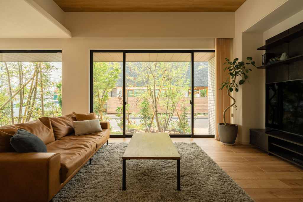 大開口の窓と勾配天井が魅力の平屋のお住まいが完成しました