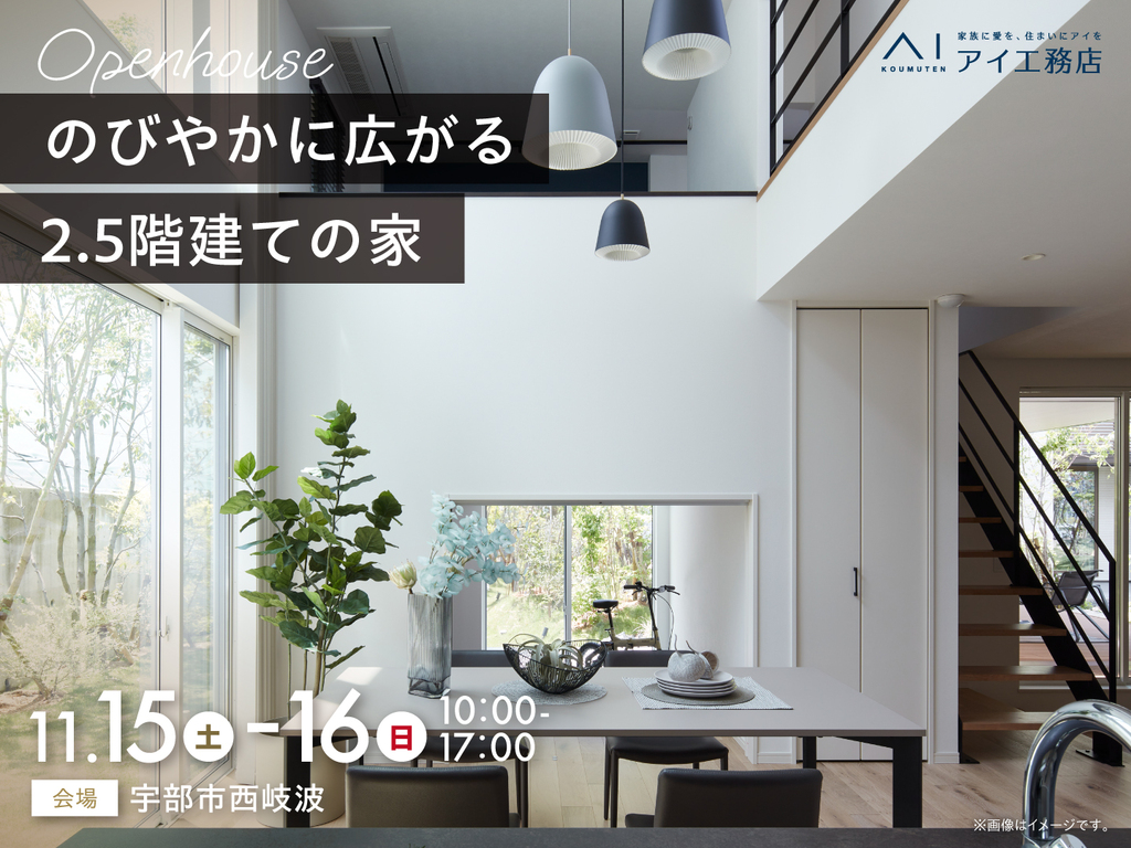 | タイトル | 宇部展示場 《宇部市西岐波》のびやかに広がる 2.5階建ての家 完成見学会 |