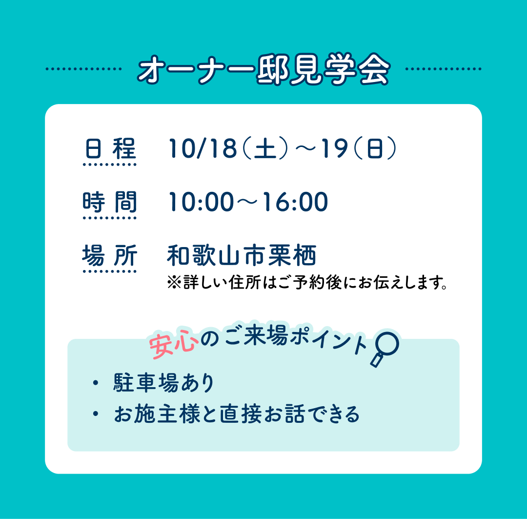 ※当日は、和歌山展示場へお越しいただき、現地にご案内させていただきます。