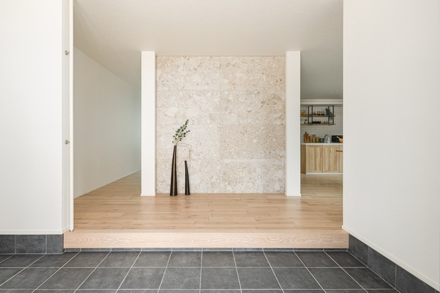 玄関ホールからパントリー、キッチンに直行できる「おかえり動線」がポイント。