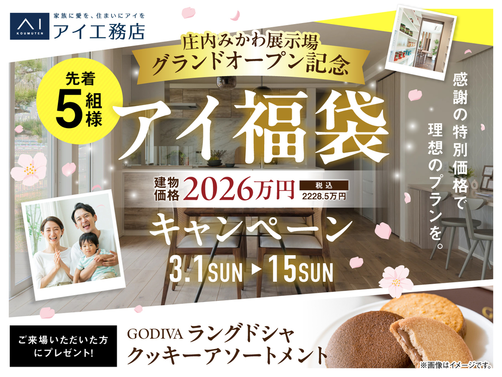 タイトル 庄内みかわ展示場 オープン記念アイ福袋キャンペーン