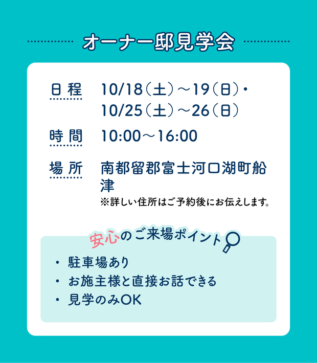 | タイトル | 富士吉田展示場 広々LDKと開放的な和室の家 オーナー様邸見学会 |