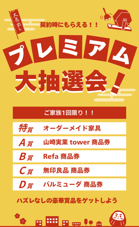 契約時にもらえる!プレミアム抽選会を現地開催しています。