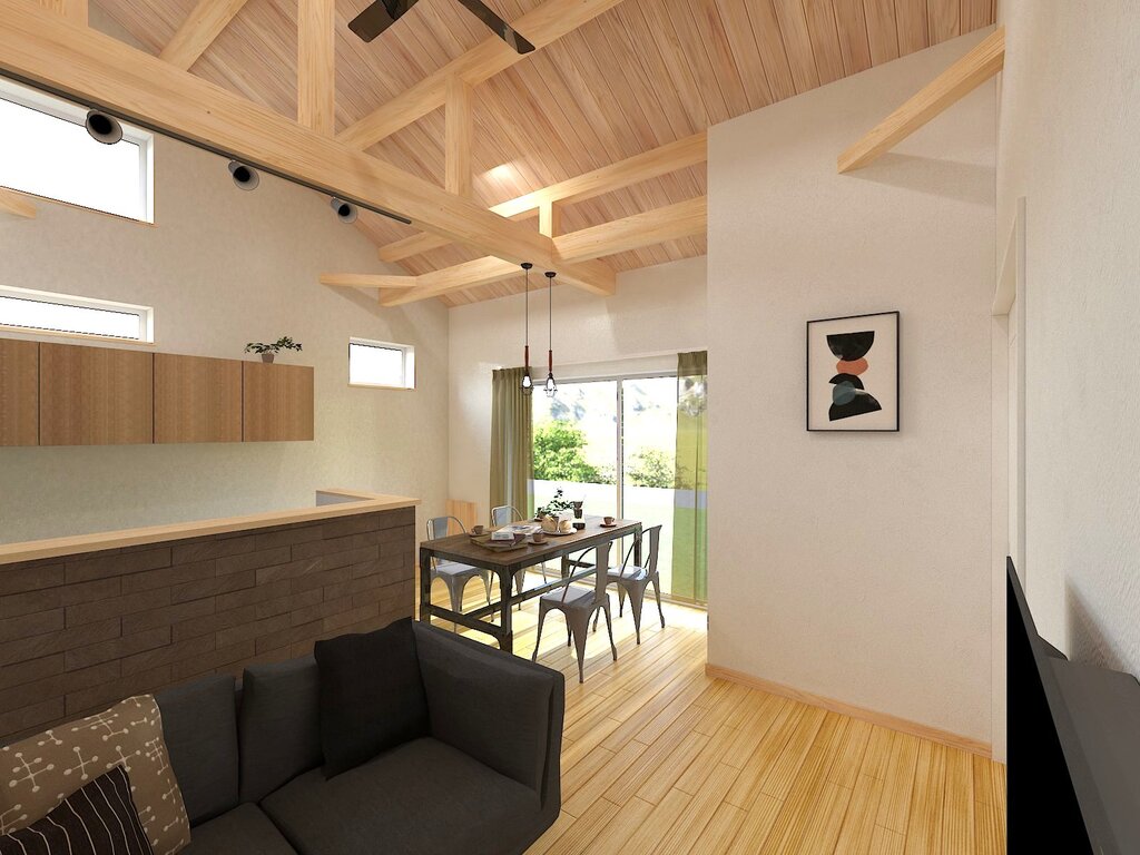 明るく開放的な南面リビングは、勾配天井で圧倒的な広がりを演出。