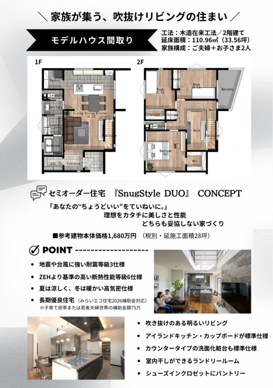 心地よさとデザイン性を高次元で両立したセミオーダータイプの注文住宅!