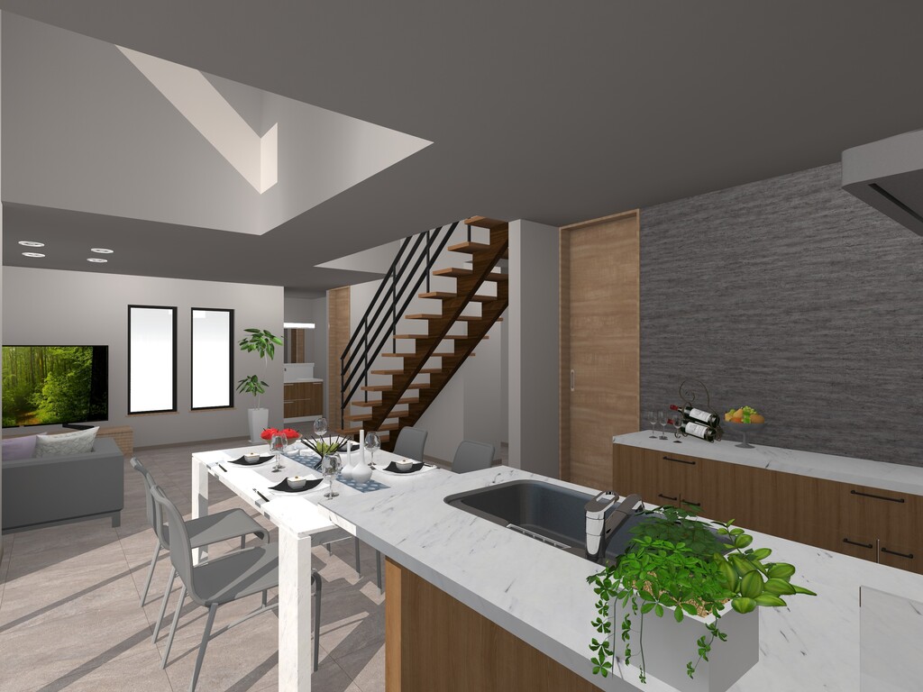■ひとつながりの広々LDKに映える印象的なオープン階段