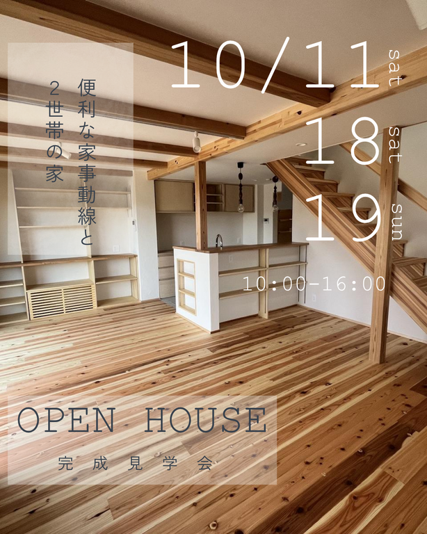 タイトル | 兵庫県明石市/便利な家事動線と2世帯の家 完成見学会 |
