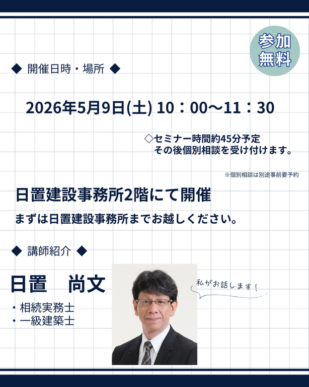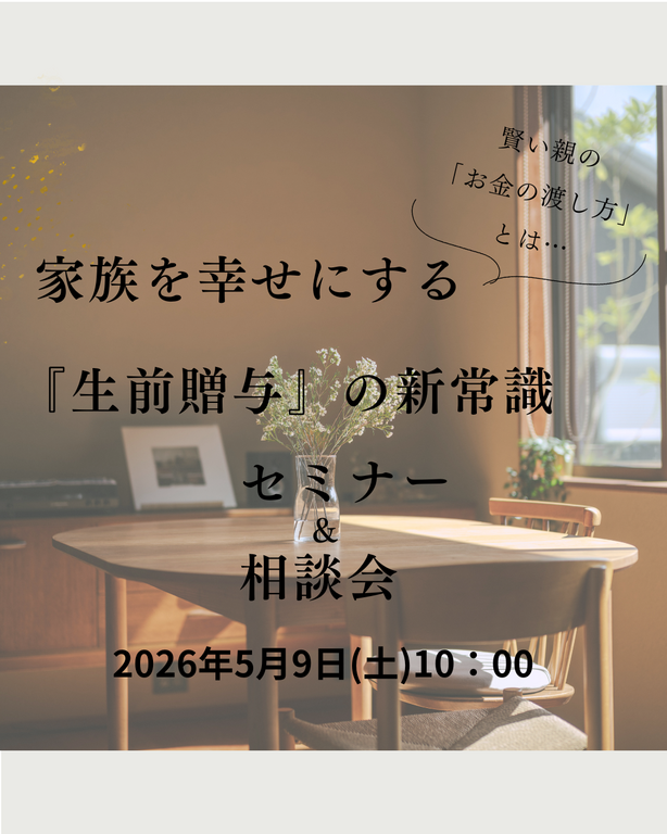 | タイトル | 兵庫県明石市/家族を幸せにする『生前贈与』の新常識 セミナー&相談会 |