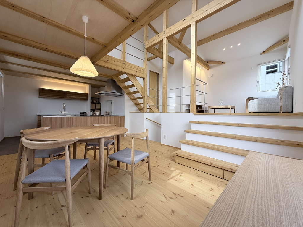 さらにインテリアは、BinOらしい「あらわしの梁や柱」の構造美と、スキップフロアならではの空間の広がりが引き立つよう、極力無駄を削ぎ落したシンプルさにこだわりました。