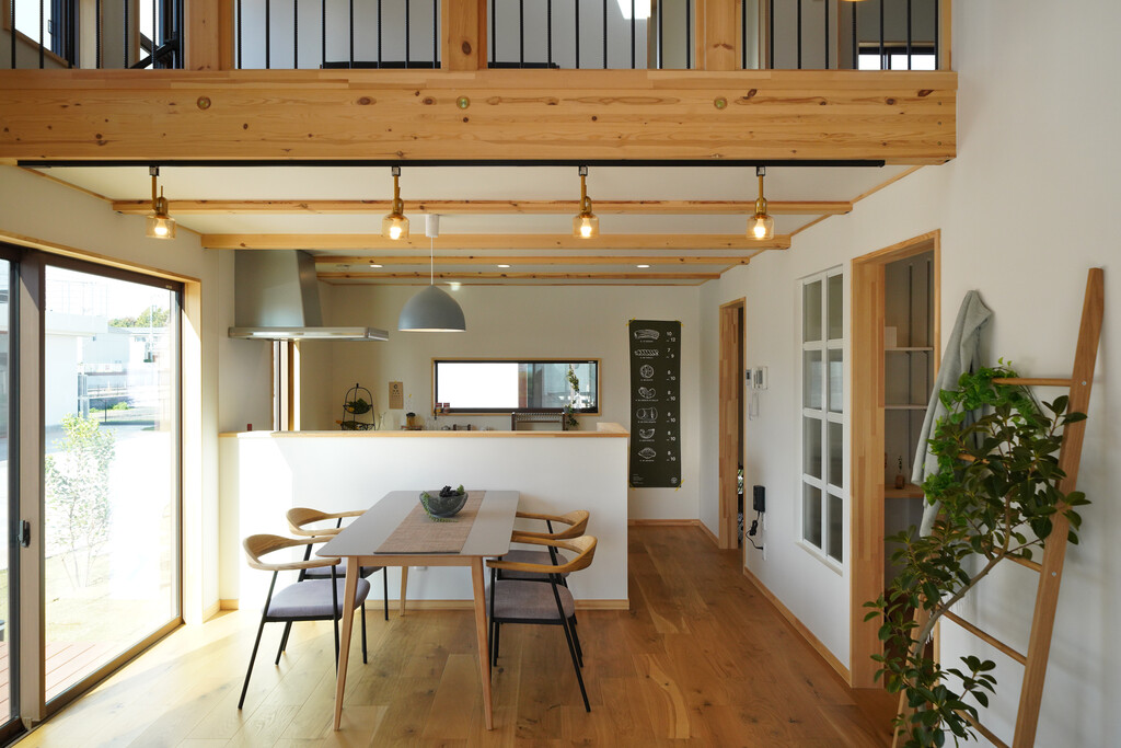 リビング上部まで視線が抜ける設計は、家全体を広く感じさせ、家族みんなが自然と集まる場所になります。