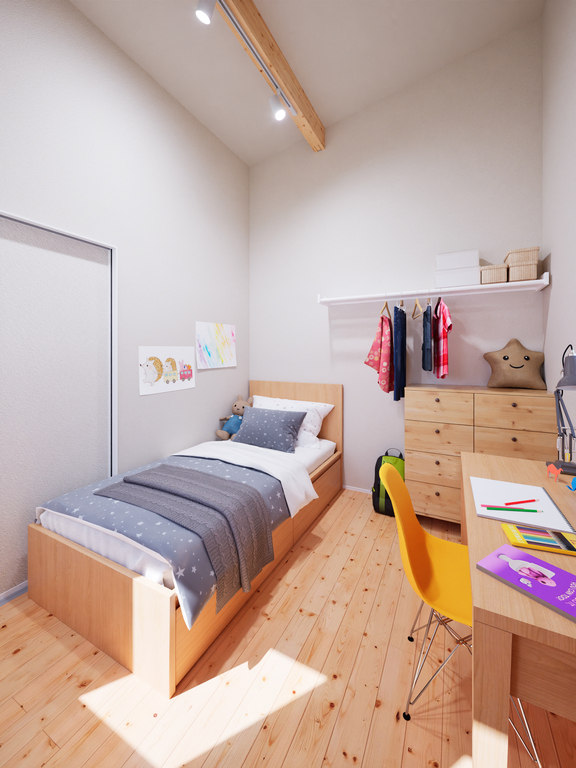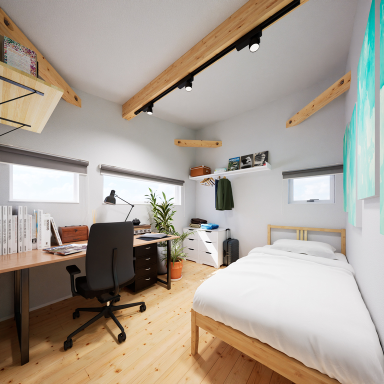コンパクトながら3つの個室を確保しているので、4人家族でもゆったりとくらすことができます。