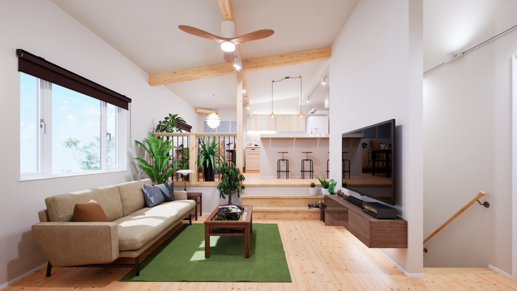 &ROSEは、スキップフロアが家族をつなぐやさしくてあたたかな家です。